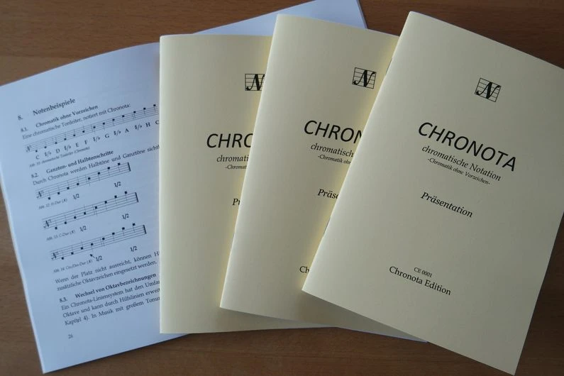 The Chronota Edition publishes music literature and music parts - not only with chromatic notation Chronota. The Chronota Edition is a part of Melangements Music Production.