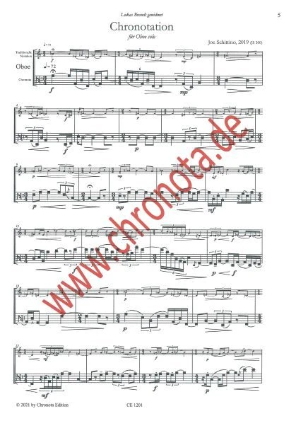 "Chronotation ist ein kleines Stück für Oboe solo ... nicht nur ein Experiment oder eine Demonstrationsarbeit, sondern auch Musik: genießen Sie deshalb alle Fantasien und Emotionen, die Sie dadurch wecken können!" J. Schittino, 2019